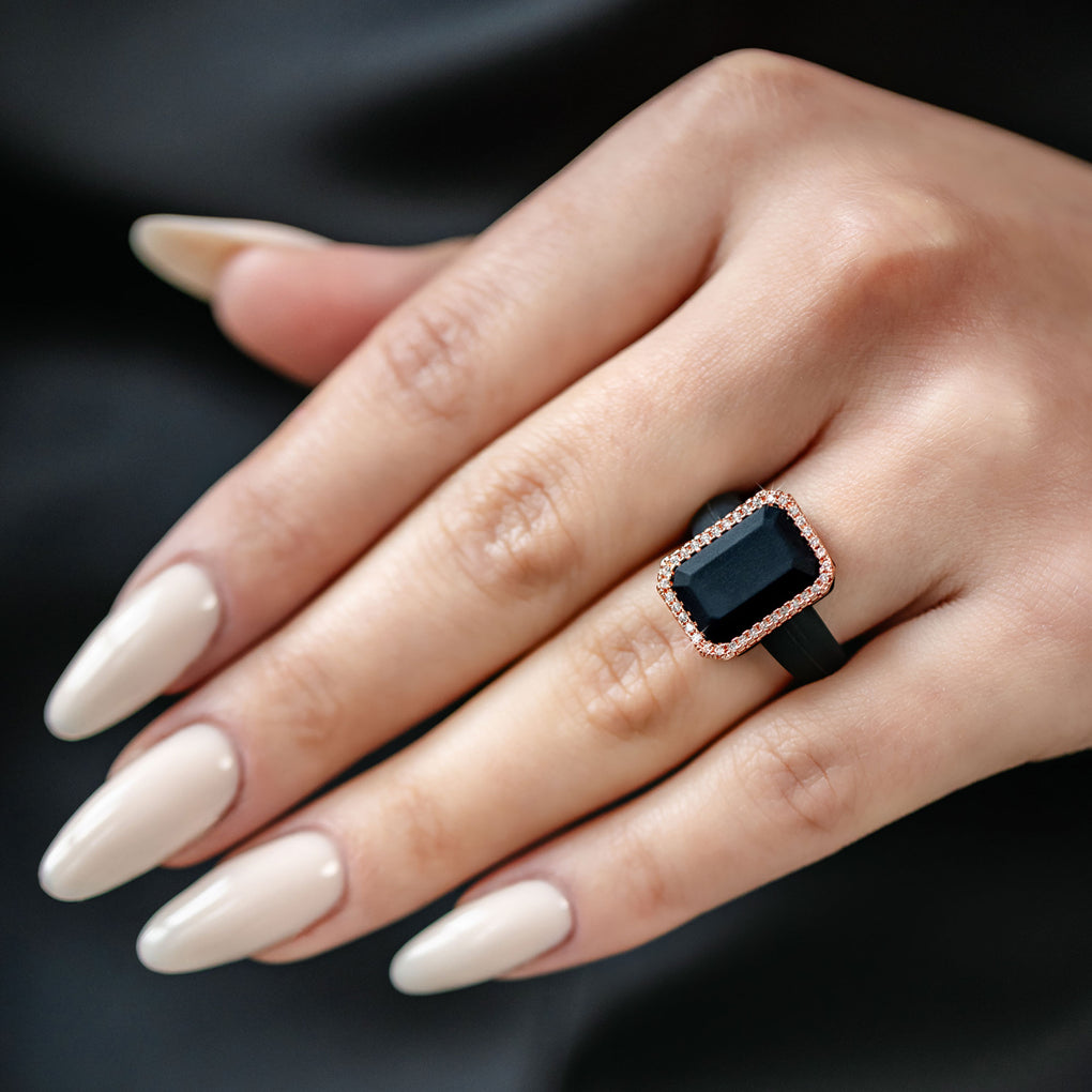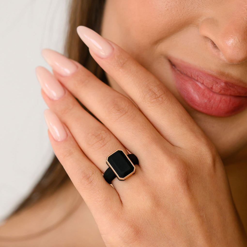The Emerald Silicone Ring is a fusion of elegance and function, featuring a radiant emerald-cut design, CZ stone set in a polished metal frame, paired with ultra-soft high-quality silicone for all-day comfort.
