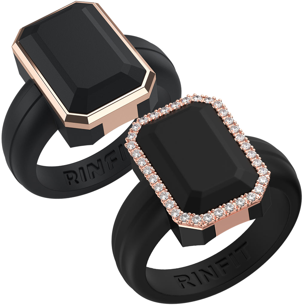 Emerald Silicone Rings with Metal Frame & CZ Stones - 2 Rings Set