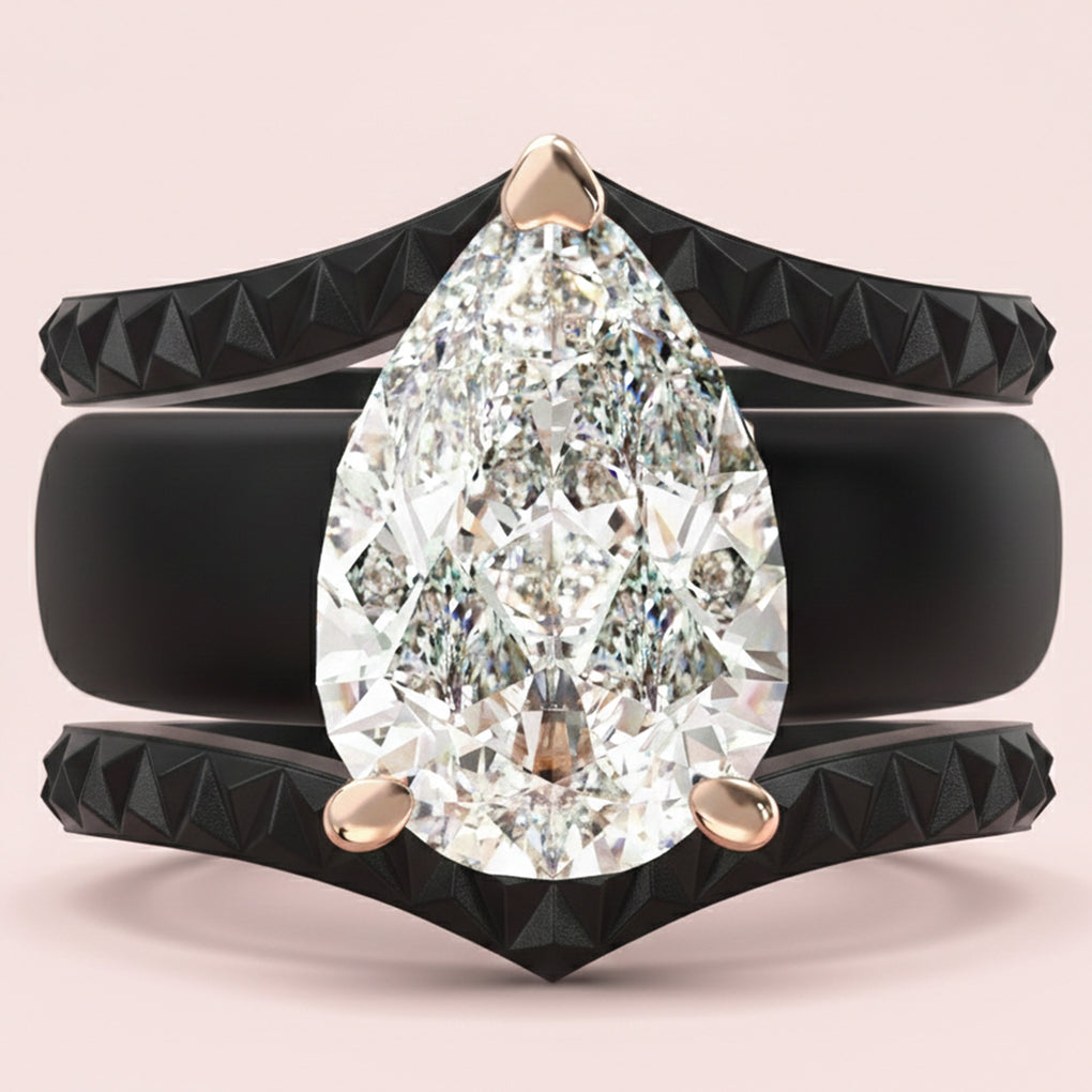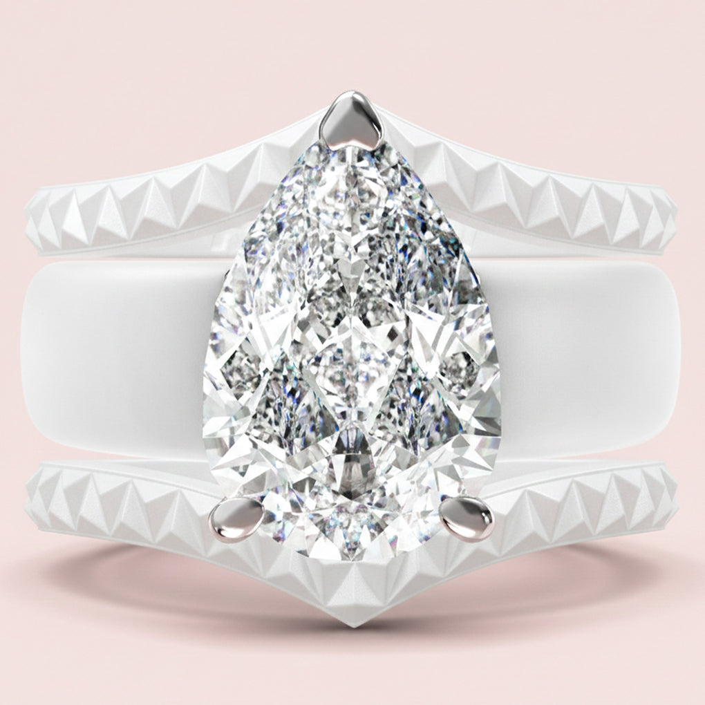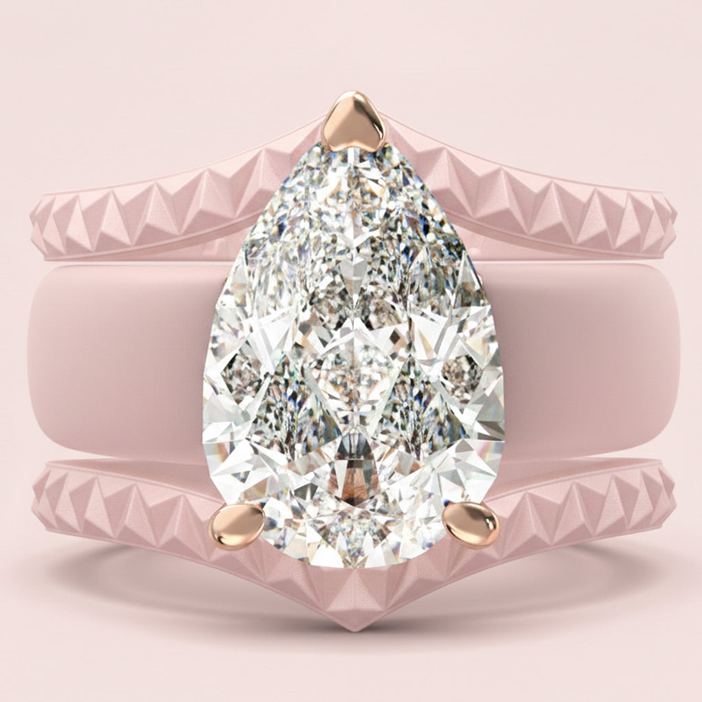 This stunning set features an 8×12 mm pear-cut cubic zirconia, beautifully set in a soft silicone band. The perfect balance of sparkle, comfort, and modern durability.