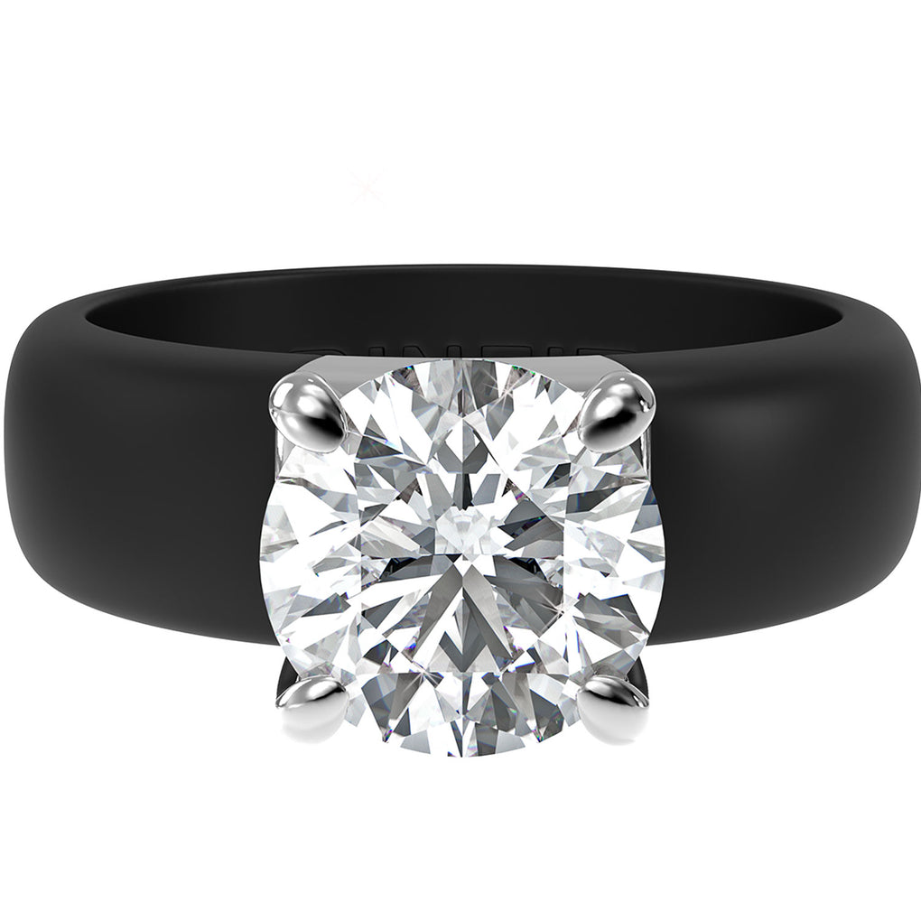 I have to wear a silicone band for work because I never know what I might be lifting or moving and my gold band got squished and misshapen. The only downside was silicone bands dont typically have the bling factor. When I found this one I was so excited. Its so pretty and insanely comfortable. The stone was more raised then I expected, but it hasnt caused any issues yet.
