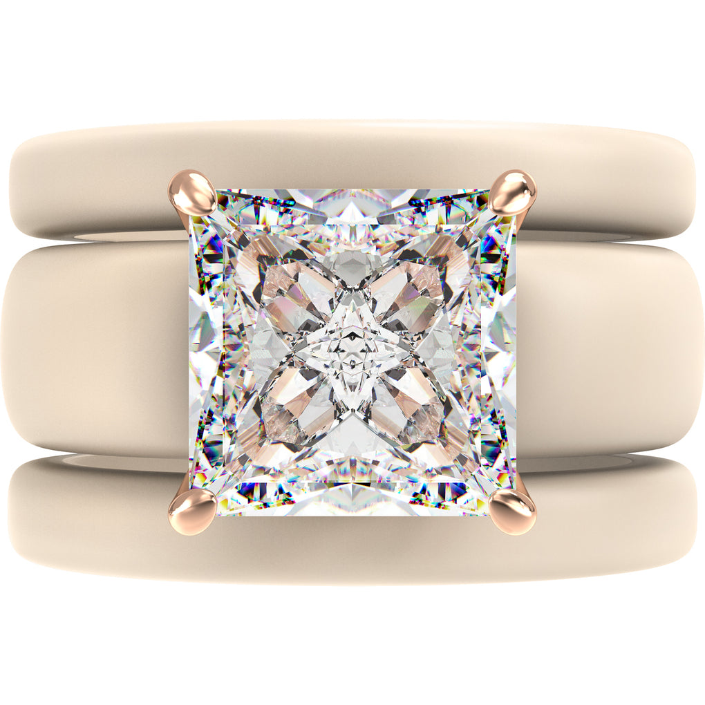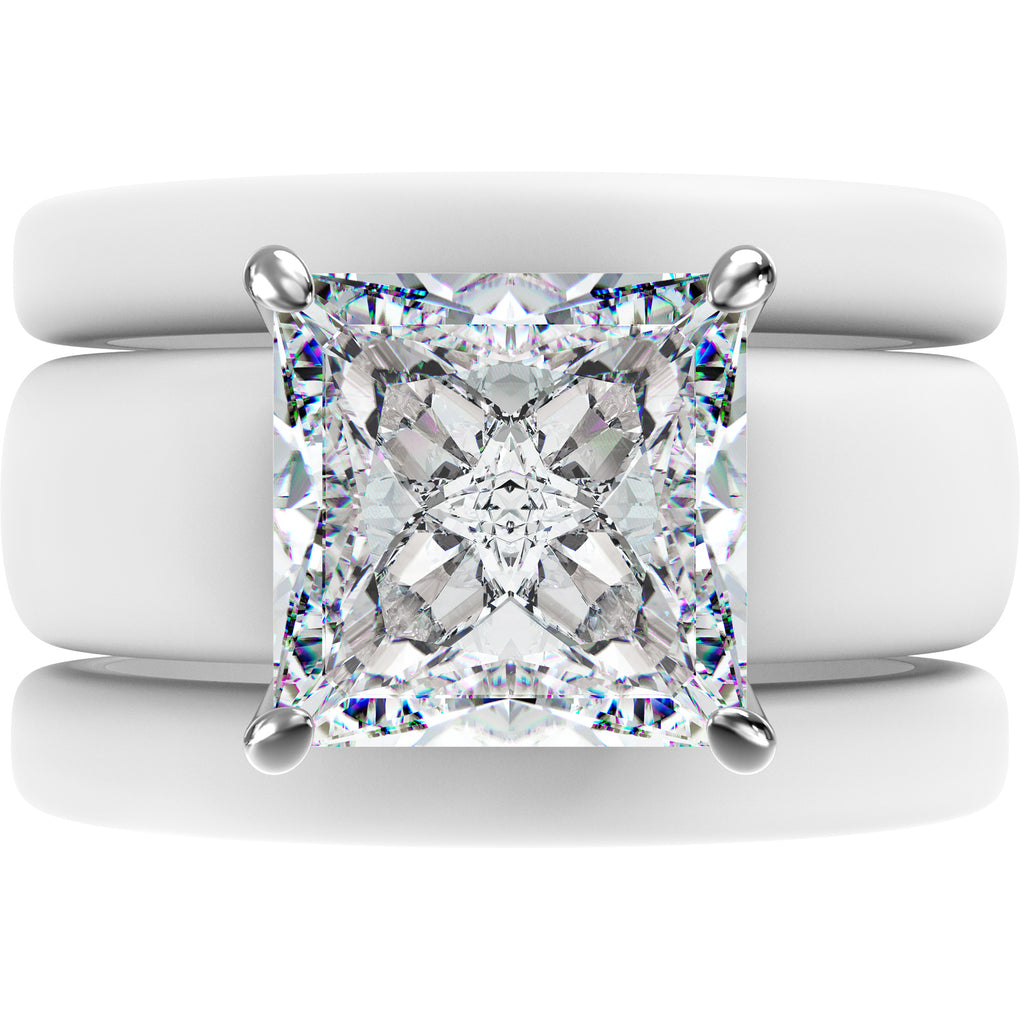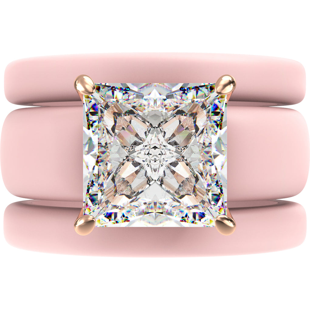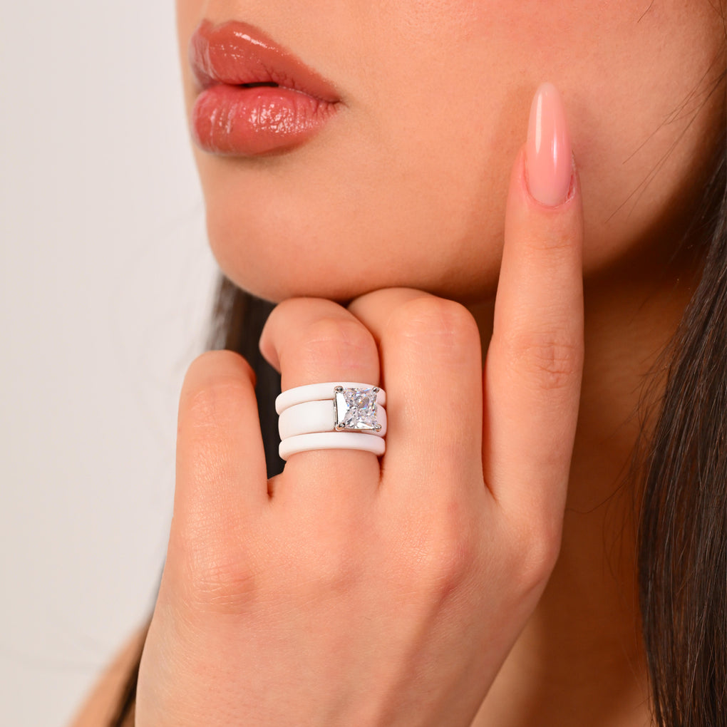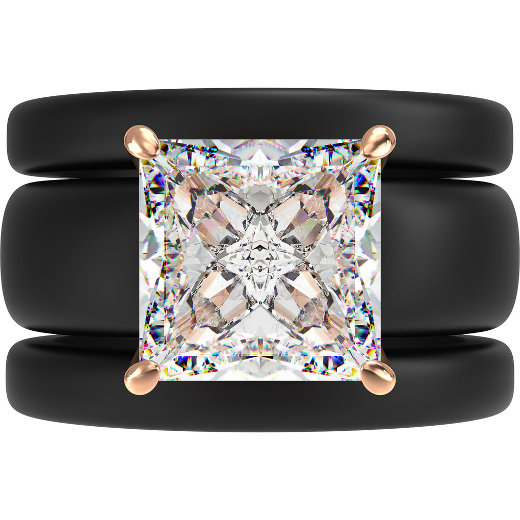 The GlowStone Princess Set features a stunning 8 x 8 mm Princess-cut cubic zirconia paired with two thin silicone rings in a stylish stackable design. Created for women who want sparkle without sacrificing comfort, this set blends modern durability with a refined, elevated look.